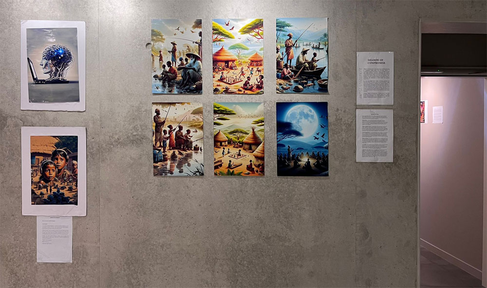 At the EVC conference in Nairobi, an exhibition of students' work on AI and Visual Cultures was opened. It was not only a virtual exhibition, which EVC presents on its website (link), but also an analog one on site. Large parts of this exhibition were able to travel to Nuremberg, where it opened on December 8th as part of a symposium on the topic “Human, Machine and Cultural Participation: AI between Art, Human Rights and Education” (link).
