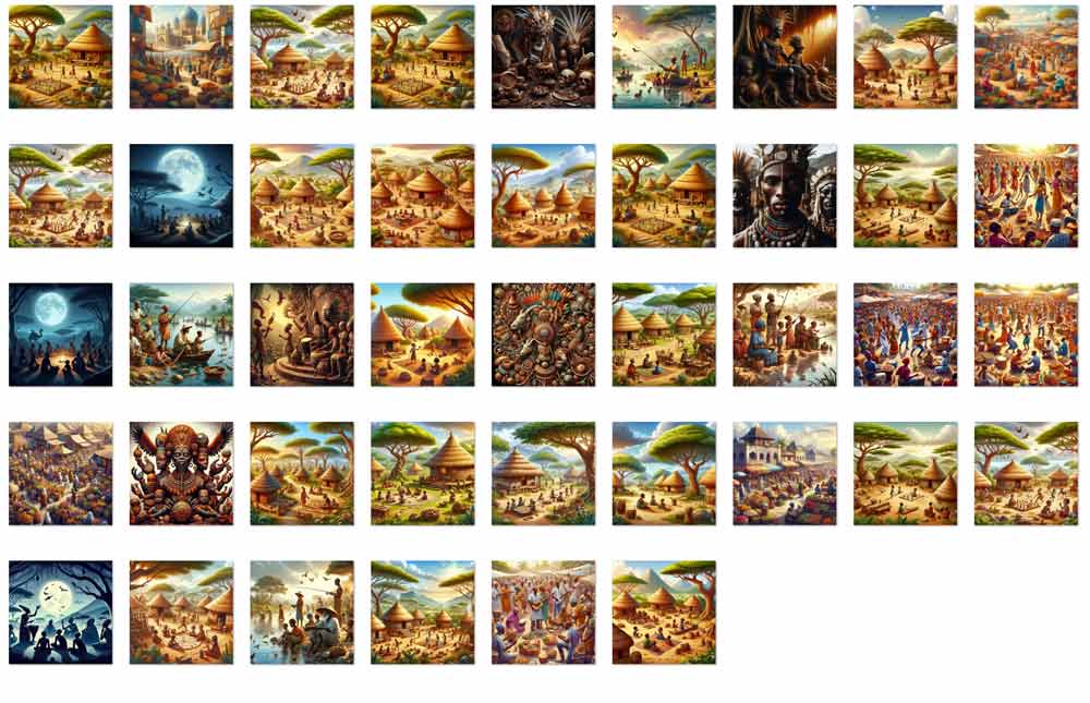 In this AI-generated artwork, I have sought to encapsulate the essence of life in a typical African society before the advent of technology. This colourful AI artwork combines themes of tradition, community, and nature to show how beautiful, and diverse the African village can be.