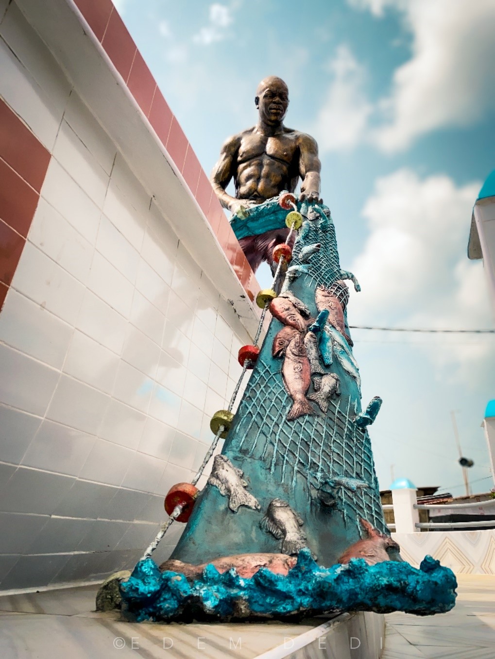 The location also plays a leading role in the performance/fashion/video installation "Jamestown Masquerade" (2004). The Ghanaian coastal town of Jamestown is one of the first communities to make contact with Europeans in the 18th century. In Donkor's work, this place now becomes an archetypal city for commerce exchange and a symbol of the cultural interplay between Europe and West Africa from the 18th century to the present. In this performance, Present day Jamestown becomes the setting for a masquerade of fashion and memory in which African performers wear English costumes from the 18th century and are accompanied by music by Handel and Mozart. In this way, Donkor also points out that the meeting of two cultures does not necessarily have to be destructive, but can also offer a great deal of creative scope for both sides.